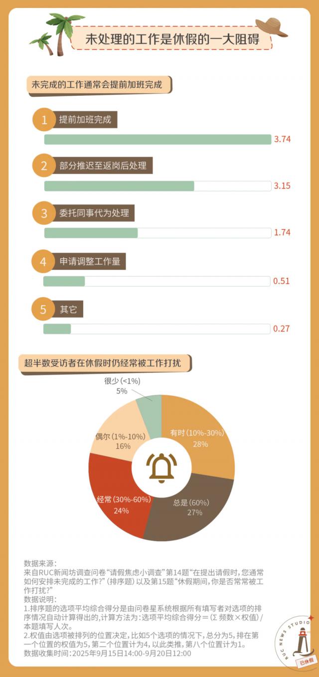 即使已经安排好手头的事项,依旧有超过半数的职场人在休假时会频繁被工作打扰。