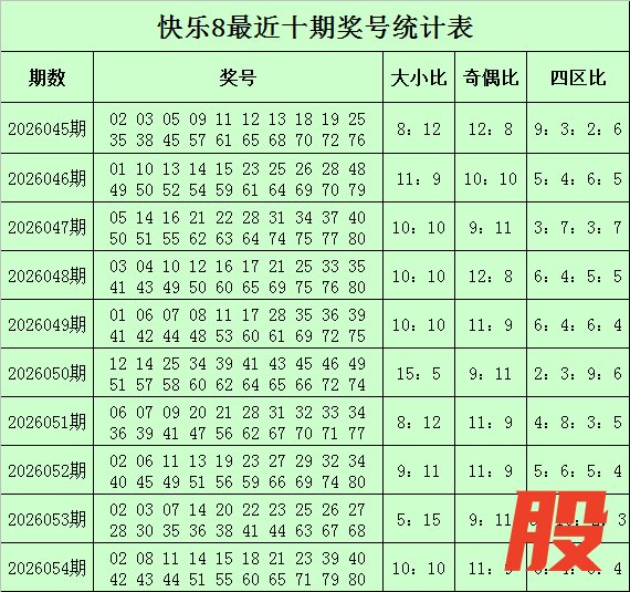 福彩快乐8第2026054期开奖回顾:02 08 11 14 15 18 21 23 39 40 42 43 44 51 55 60 65 71 79 80,其中奖号四区比为6:4:6:4,奇偶比为11:9,大小比为10:10。